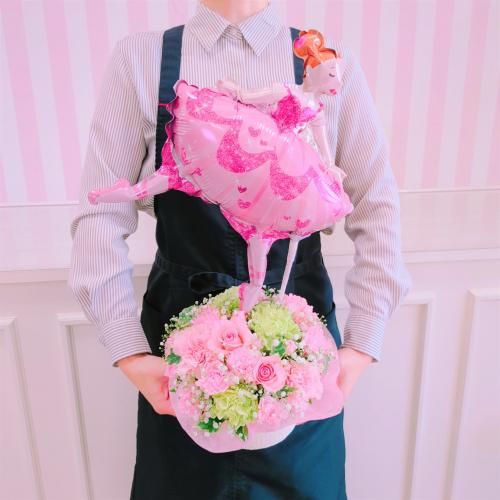 かわいいバレリーナちゃんのバルーン付きフラワーアレンジメント☆
